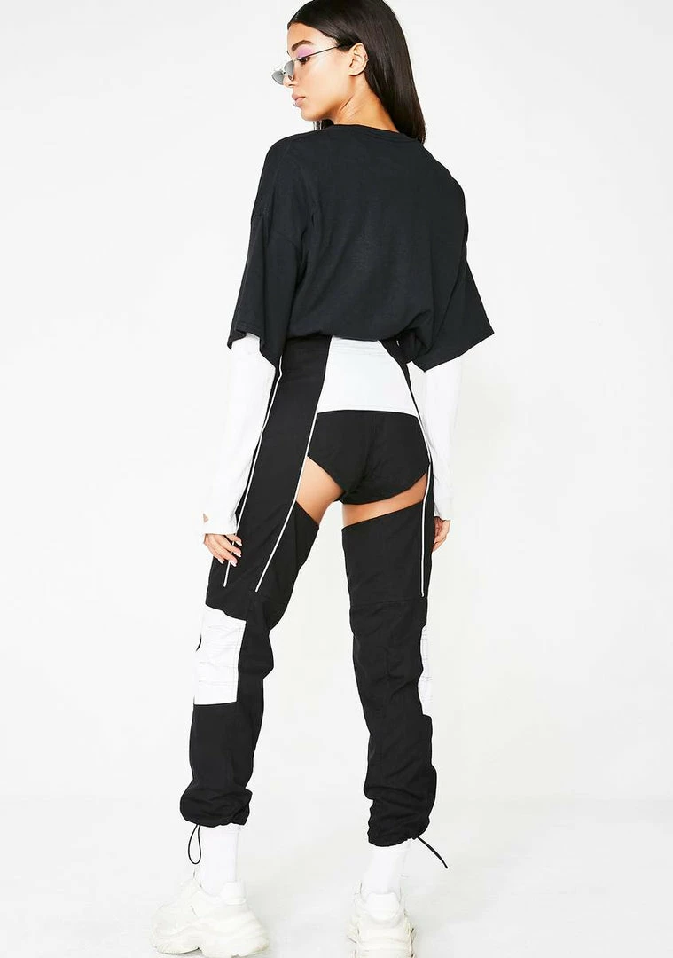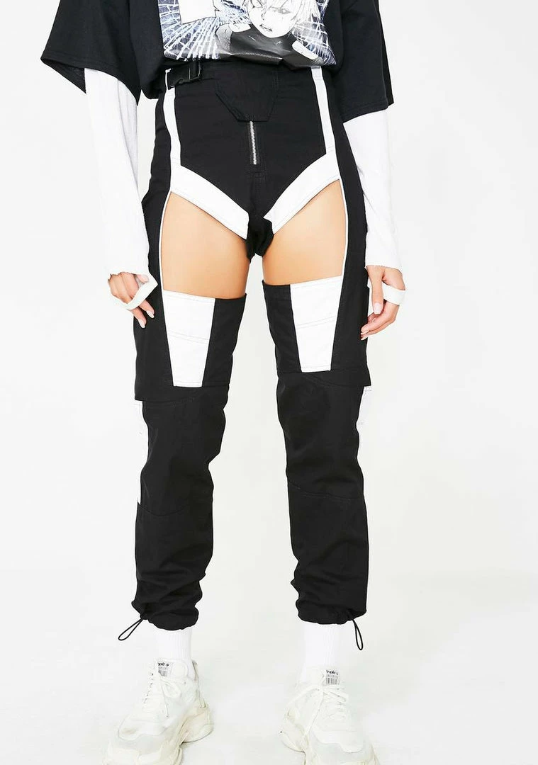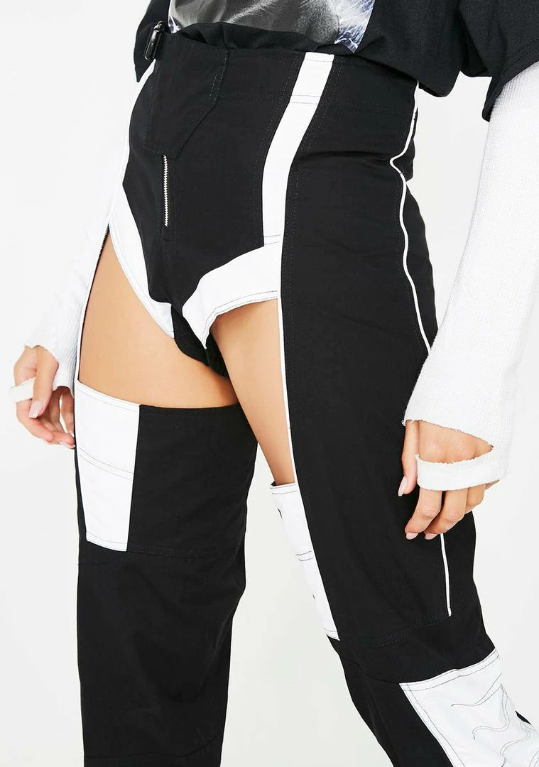 will drive âem crazy bb! Rev their engine in these sexxy AF motocross pants that have a high waist fit, front Nâ back cutouts, toggle drawstrings at the ankles, and a buckle Nâ zip closure.