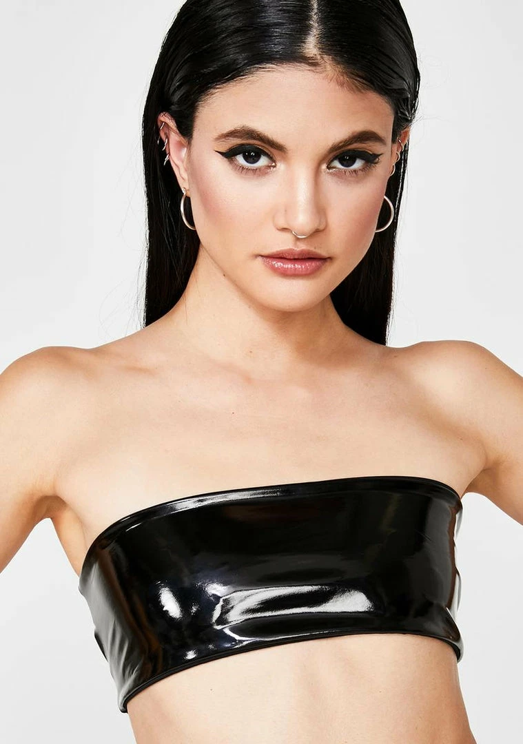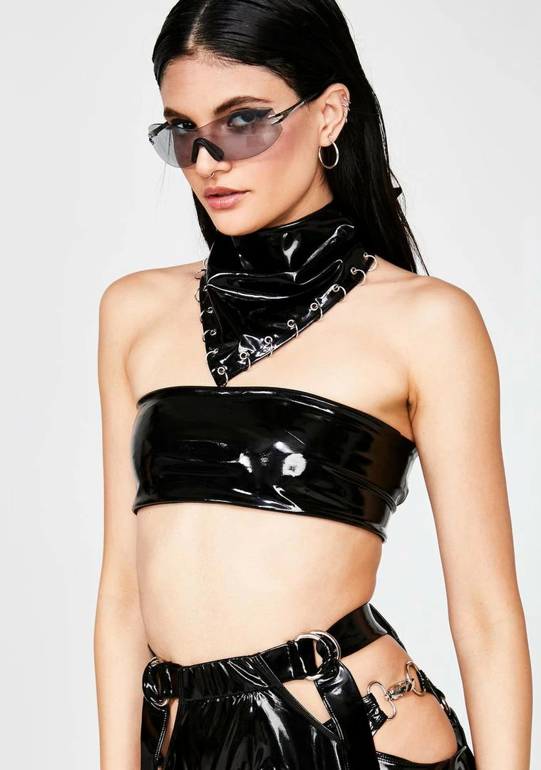 cuz youâre a boss babe! They canât tell ya nothinâ in this sikk PVC bandeau top that has dope buckle clasp closures on the back Nâ a cropped fit.