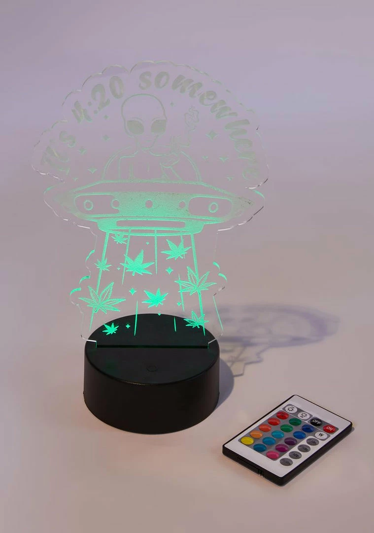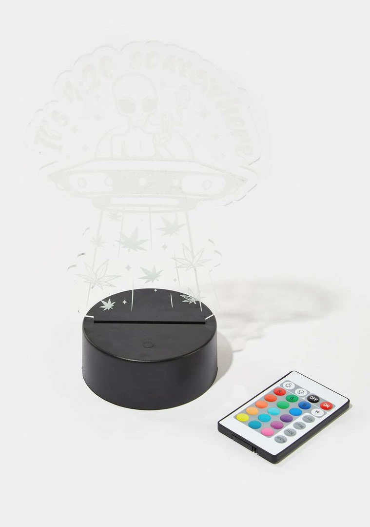has alien weed leaf graphics with remote control to change colors.
