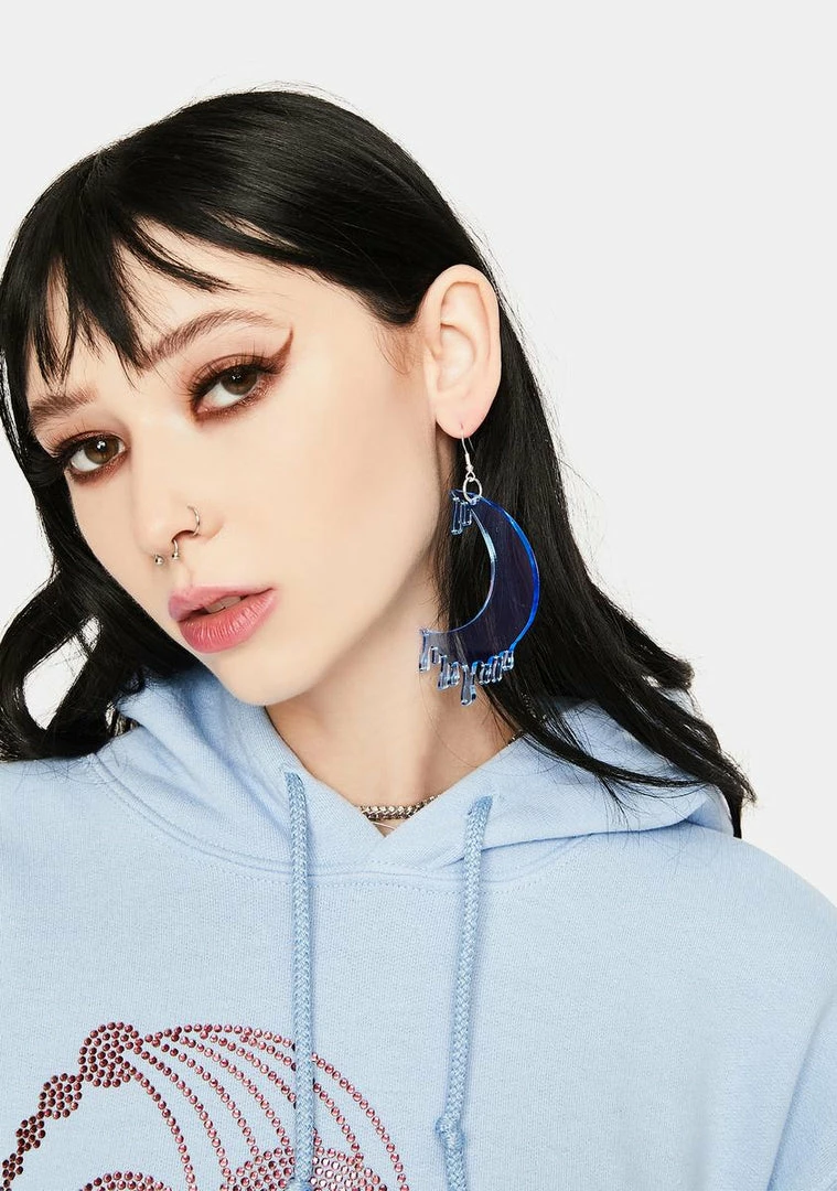 New ???? Rolita Rave Couture Blue Drippy Moon Face Earrings Jewelry ????
